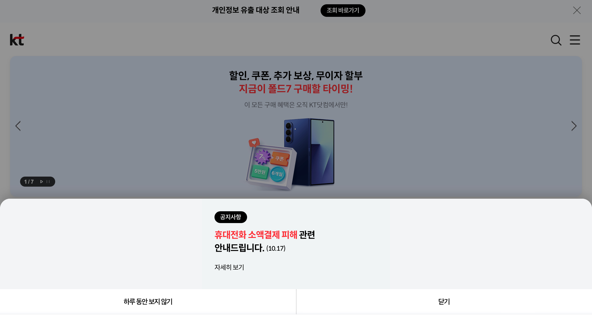 KT 공식 홈페이지에서 다양한 상품과 서비스를 이용하시는 고객님께 특별한 혜택과 맞춤형 서비스를 제공합니다. 최신 핸드폰을 포함한 여러 제품을 구매하고, 다양한 이벤트에도 참여해보세요