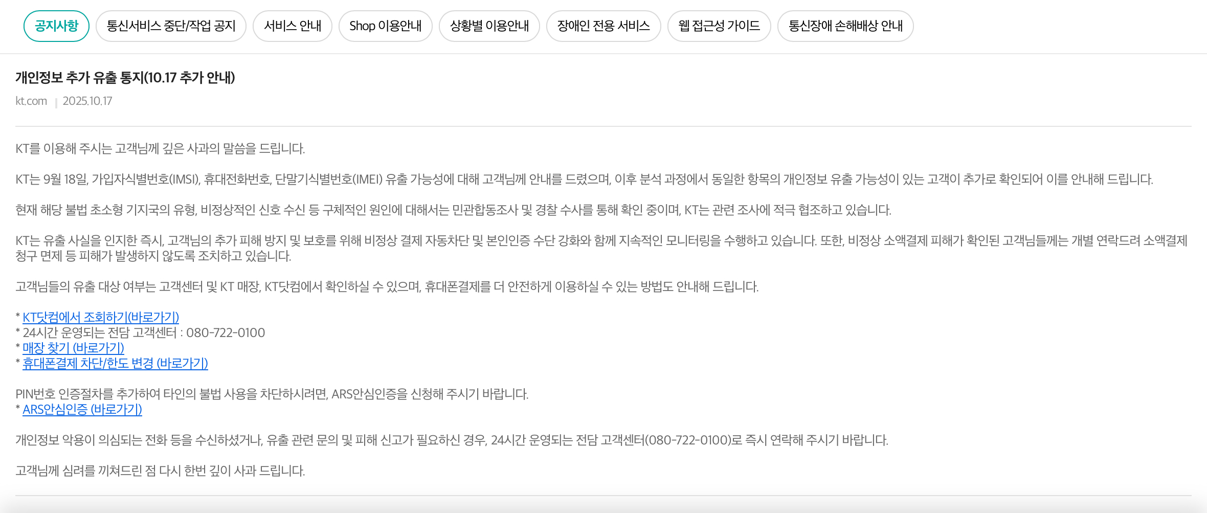 KT가 최근 발생한 해킹 피해에 대한 후속 조치로