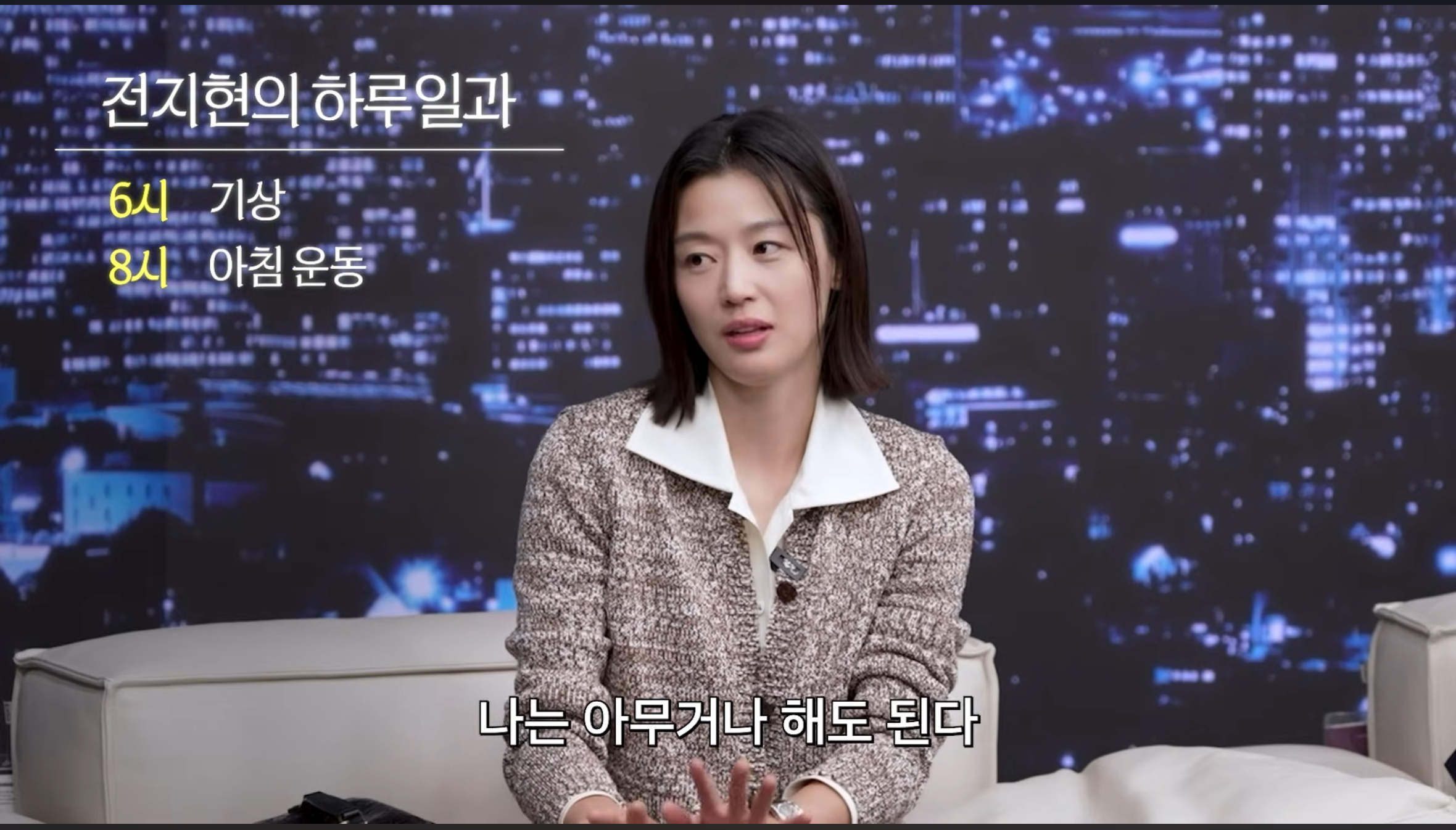 전지현은 "러닝도 하고, 복싱도 한다"며 자신의 운동 루틴을 공개했다.