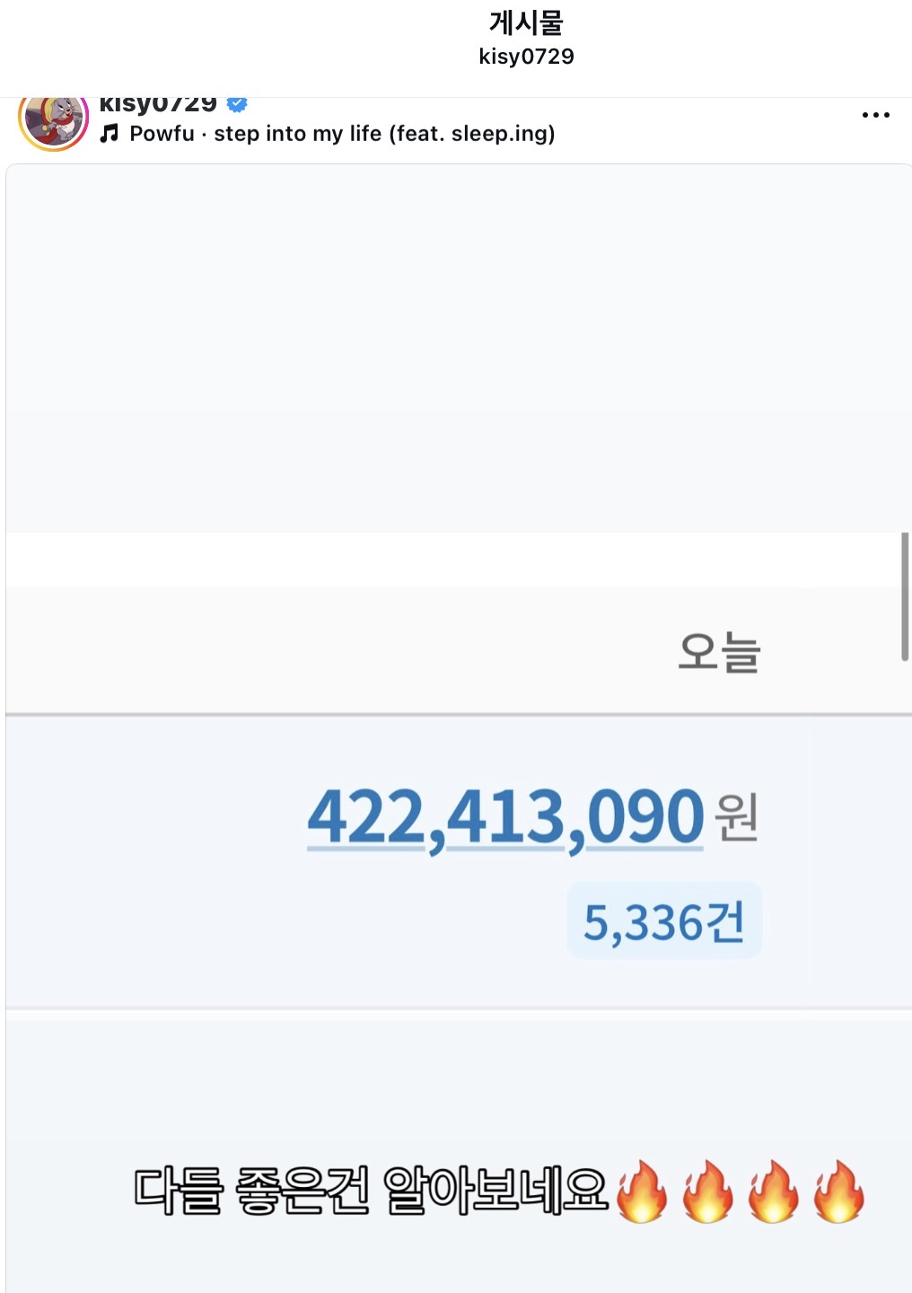 홍영기는 2월 24일 자신의 소셜 미디어에 매출 인증 이미지를 공개했다.