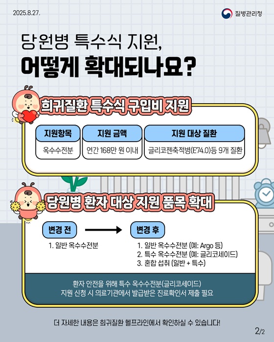 희귀질환은 치료뿐 아니라 식이조절이 매우 중요한 질환입니다. 이번 특수식 지원 확대 정책은 환자와 가족 모두에게 실질적인 도움이 될 것으로 기대됩니다.