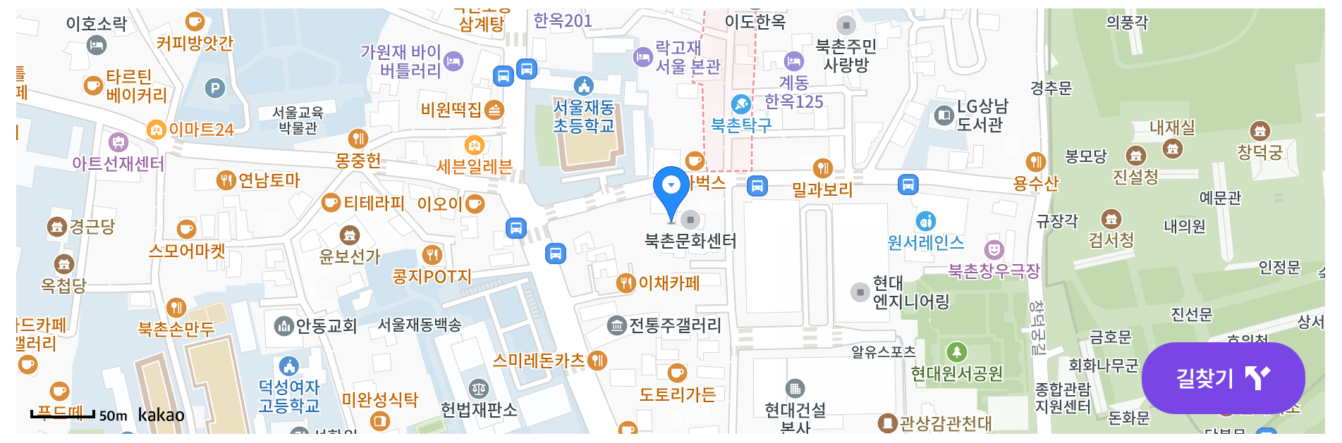 북촌 일대는 골목이 좁고 주차 공간이 제한적입니다. 가급적 대중교통 이용을 권장합니다.