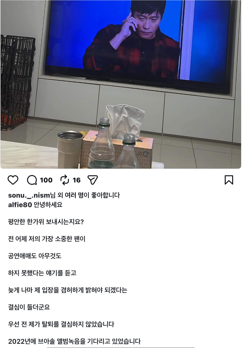 2023년 브라운아이드소울을 탈퇴한 성훈이 최근 자신의 인스타그램을 통해