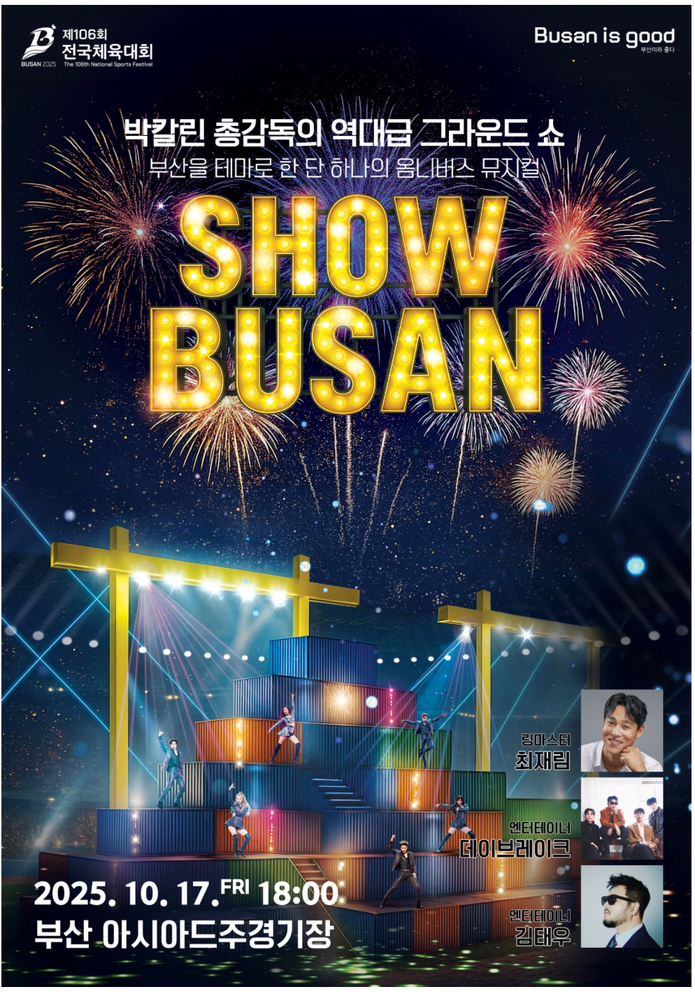 개막식은 부산의 해양도시 이미지를 살린 컨테이너 무대와 해상 퍼포먼스, 드론 쇼, K-POP 공연 등으로 구성됩니다.